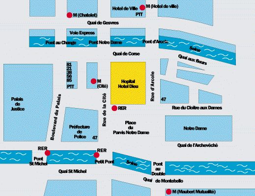 A Hôpital Hôtel Dieu - Amphi Lapersonne - RDC - Aile B - 1 place Jean Paul II - Parvis Notre Dame - 75004 Paris - RER St Michel ligne C ou métro St Michel